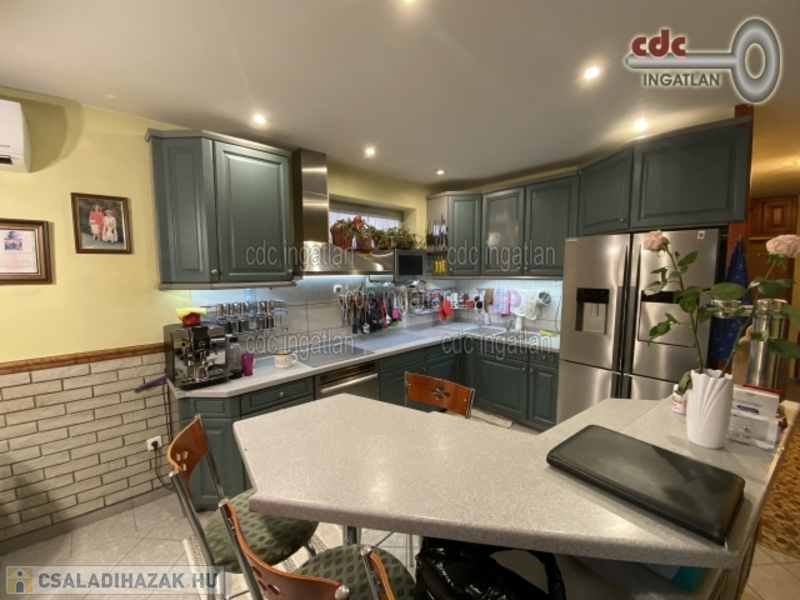 Kizárólag a CDC Ingatlaniroda kínálatában! Dabas Sári kellemes, csendes utcájában, 200 m2-es, 4 szobás+nappalis, tetőtér beépítéses, igényes családi ház eladó, melyben egy utcafrontra néző, 27 m2-es üzlethelyiség is helyet kapott! Az ingatlan a 90-es évek végén épült téglából. Rendszeresen karbantartott, impozáns ingatlant ajánlok a figyelmébe. A földszinten 2 tágas szoba, konyha-étkezővel, nappali, fürdő, kamra, hatalmas fedett terasz, valamint egy üzlethelyiség található, utóbbi szépségszalonként működik jelenleg is. Az emeleten 2 szoba, fürdőszoba és egy tágas galéria kapott helyet. Udvara, mely 928 m2 szépen parkosított, öntözőrendszerrel ellátott, locsolása fúrt kútról megoldott, itt helyezkedik el a dupla garázs, egy üvegház, nagy medence, valamint a ház alatt egy 60 m2-es pince, mely részben tároló, részben garázs szerepet tölt be. Fűtése gázkazánnal, padlófűtésen keresztül, hűtő-fűtő klímával, illetve egy egyedi kályhával megoldott, mely több funkciót tölt be a nagycsalád életébe. Fűteni lehet vele, szintén padlófűtésen keresztül, valamint sütni, főzni, ennek a kis csodának a pontos neve: Palazzetti bellai doro 20. Nézzen utána! Az ingatlan riasztóval, kamerarendszerrel, elektromos kapukkal, garázskapuval, alumínium redőnyökkel szerelt. A ház előtt nagy parkoló, több autó parkolására van lehetőség. Az ingatlan főbb jellemzője az igényes kialakítás, tágas, világos helyiségek, illetve minden megtalálható benne, amire egy nagy családnak szüksége lehet. Egy nagyon barátságos, kellemes, szép és jól felszerelt ingatlant ajánlok figyelmébe, ahol a vállalkozását is tudja működtetni. Ha bővebb információra lenne szüksége az ingatlannal kapcsolatban, kérem hívjon bizalommal!