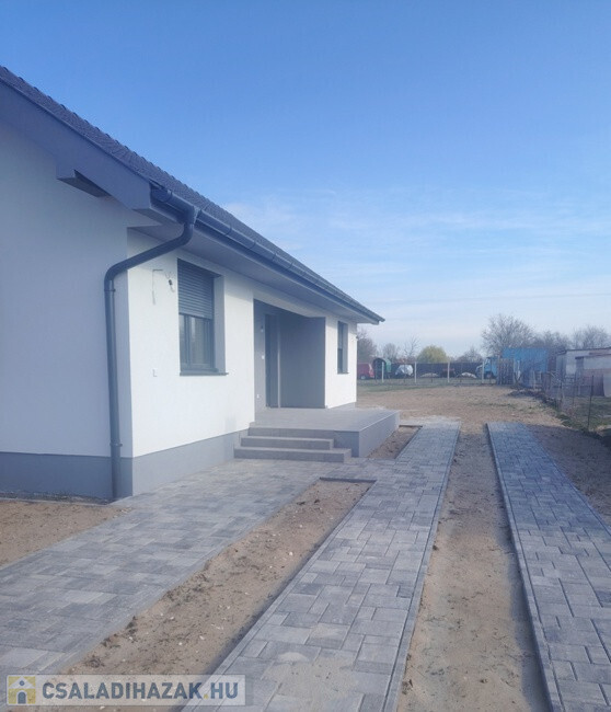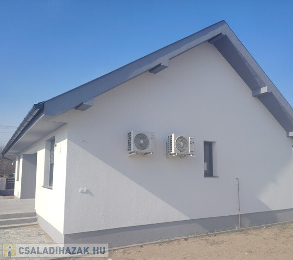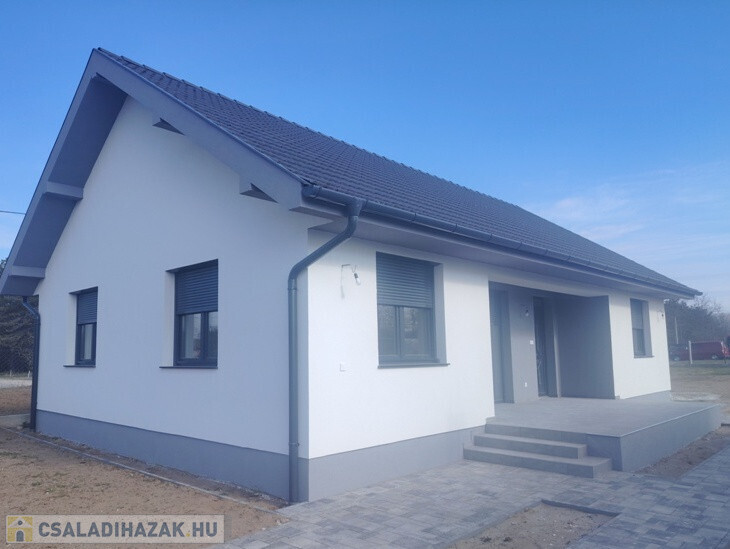 Dabason, rendezett környezetben értékesítésre kínálok egy 87 m2-es önálló családi házat. Az épület új, lakhatási engedéllyel rendelkezik. Beton alapon B30-as Leier téglából épült, a tető héjazata betoncserép. A külső falak 10 cm hungarocell szigetelést kaptak , a nyílászárók 3 rétegű műanyagok, melyek alumínium redőnyökkel ellátottak. A nappalinál elektromos redőny szolgálja a kényelmet, innen ki lehet menni a teraszra is. A fűtés Vaillant gázkazánnal, padlófűtéssel lett kialakítva, de 3 db hűtő-fűtő klíma is beszerelésre került. A szobák laminált padló burkolata 8000 Ft/ m2-ig választható egyéni ízlés szerint. A közművek közül villanny, fúrt kúttal és zárt emésztővel rendelkezik. Az utcában nem elérhető a vezetékes víz és a csatorna. A kapu elektromos működtetésre előkészítve. A házban riasztó rendszer helye ki lett építve. Megtekinthető a hét bármely napján: Antal Krisztina 06204004014