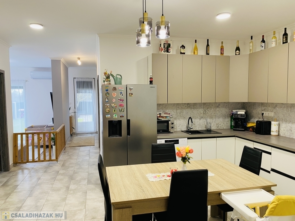 Építési Minőség és Kor: A ház 2024-ben épült, téglából, 10 cm-es hőszigeteléssel ellátva, garantálva a kiváló energetikai hatékonyságot. Az enteriőr nívós, exkluzív burkolatokkal és ízléses designnal készült.