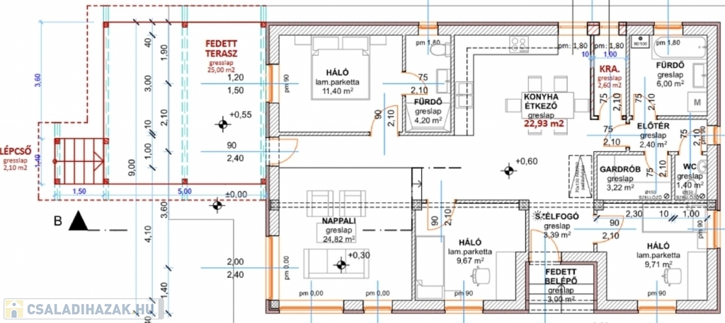 Alapterület és Elosztás (102 m²): Az ingatlan kiváló beosztással rendelkezik: 3 hálószoba, külön gardróbszoba, tágas, gépesített konyha-étkező, kamra, valamint egy egyedi tervezésű, süllyesztett nappali biztosítja a kényelmes életteret.