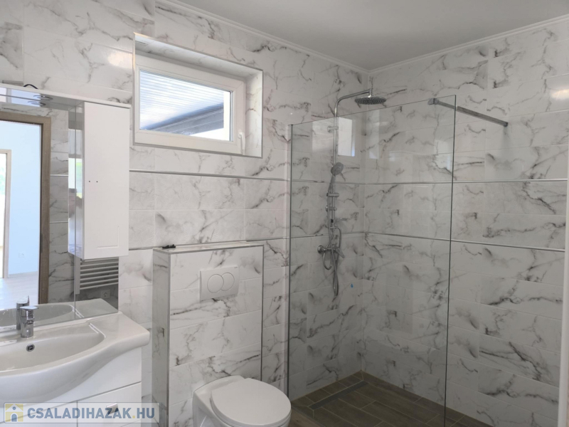 Főbb jellemzők:• 3 hálószoba + világos nappali,fűtése hőszivattyú padlófűtés, 2,6 KW inverteres klima• Praktikus elrendezés (külön WC, háztartási helyiség)• 400 m² saját telek, rendezett udvar• 18 m² fedett autóbeálló