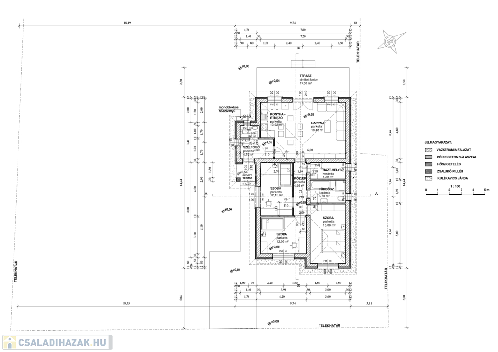 Az ingatlan 30-as Nútféderes tégla falazóelemből épül, fa födémmel.