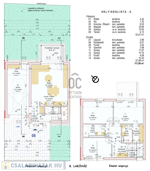 8. lakóház Br. 118 nm, nappali + 3 hálós: