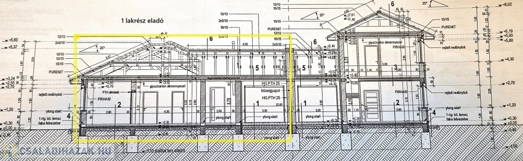 - 30 cm tégla főfalak + 10 cm hőszigetelés