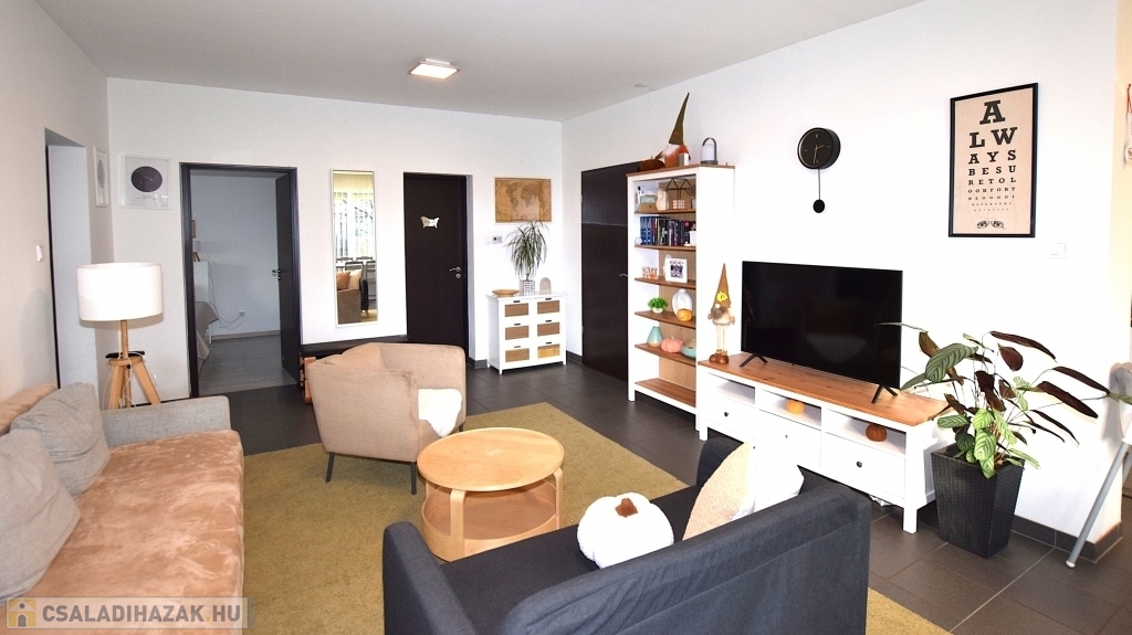 - tágas világos nappali, közvetlen terasz kapcsolattal