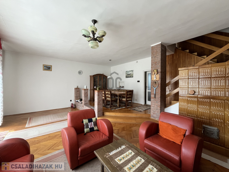 A ház hatalmas nappali étkezővel+ 4 szobával és garázzsal rendelkezik.