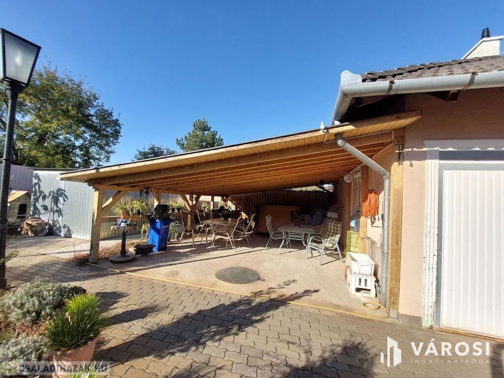 Eladó egy 100 m²-es földszintes családi ház, amelyhez 20 m²-es garázs és egy gyönyörű, parkosított kert tartozik. Az ingatlan 3 hálószobával, világos nappali-étkező-konyhával, kamrával, fürdőszobával, külön WC-vel, mosókonyhával, gardróbbal és nagy terasszal rendelkezik.