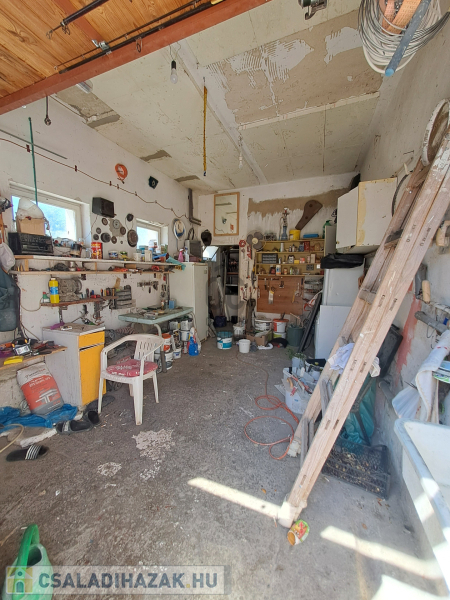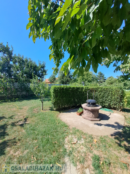 Az ingatlanban egy egyállásos garázs is helyet kapott, így a parkolás egy autó számára megoldott. Az ingatlanhoz tartozó 589 négyzetméteres telek rendezett kerttel rendelkezik, amely tökéletes helyszín a gyerekek játékához vagy a felnőttek pihenéséhez. A kertbe gyümölcsfákat ültettek, amelyek öntözése a fúrt kútból történik, illetve főzőhely is kialakításra került.
