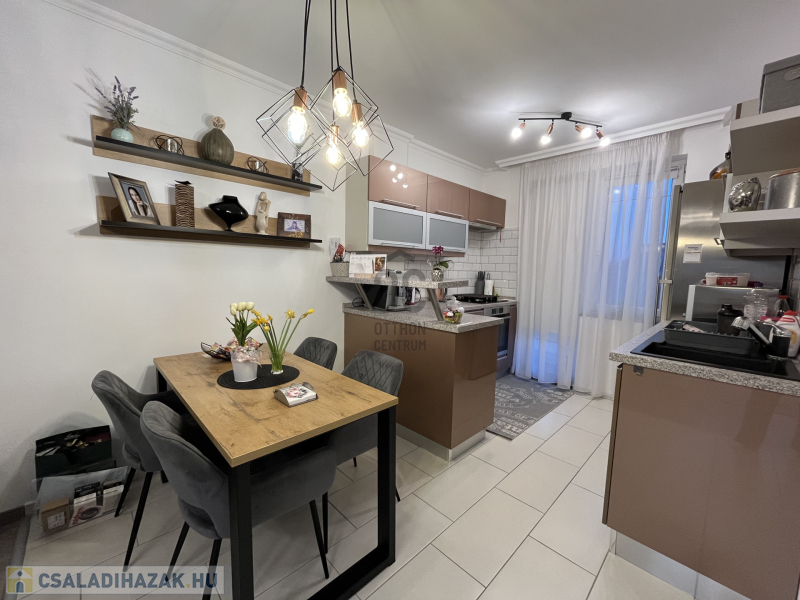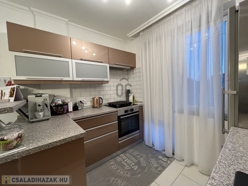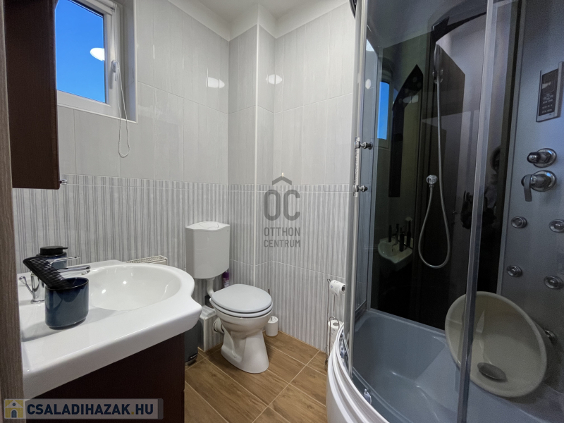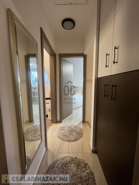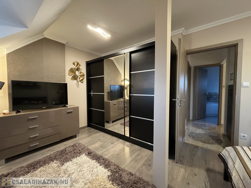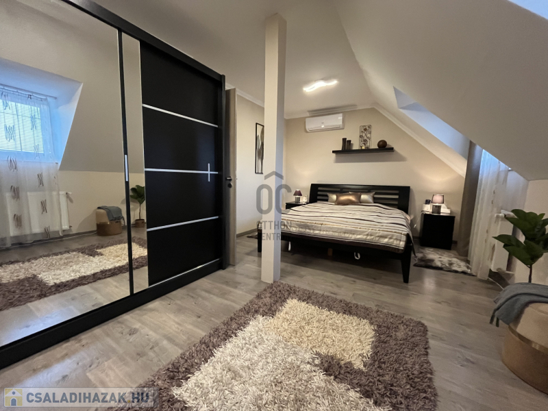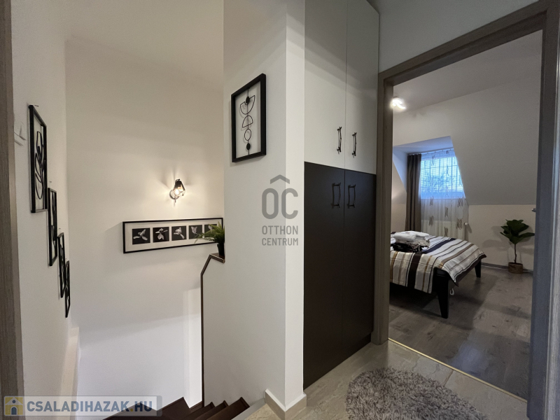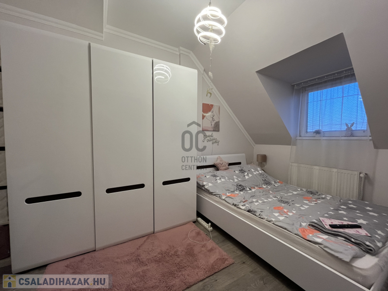 Az ingatlan 2007-ben épült, 108 m2-es térkövezett elő és hátsó kerttel, garázzsal, valamint külön bejáratú alsó szinttel rendelkezik, amely irodának, rendelőnek vagy üzleti célra is ideális lehet.
