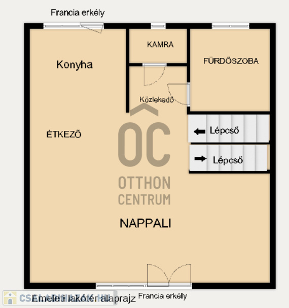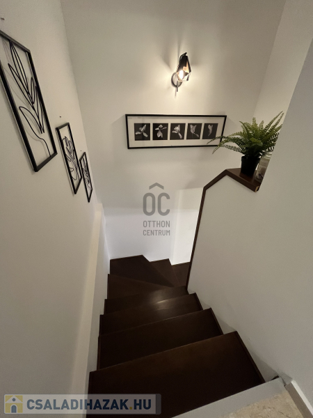 Az ingatlan központi eleme a 33 m2-es, letisztult amerikai konyhás nappali-étkező, ahol az ápolt fa borítású lépcső, eleganciát sugároz.