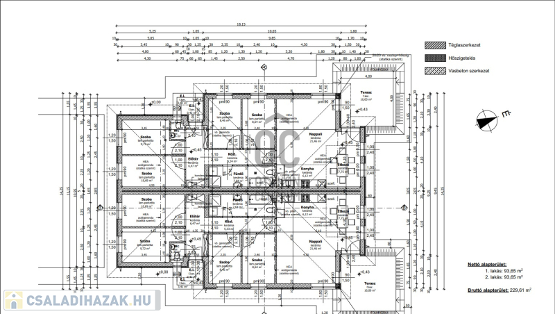 A házak Bruttó 114 m2, hasznos alapterület 94 m2 + 16 m2 terasz + előlépcső!
