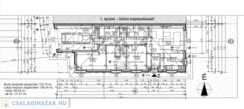 Az ingatlan beépített területe : 108 m2 + egy : 15 m2 - es terasz tartozik hozzá.