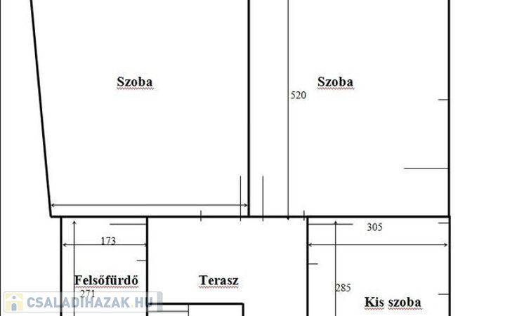 A földszinten 2 nagy méretû szoba, konyha, fürdõszoba és WC, az emeleten 3 szoba, fürdõszoba, WC, valamint egy nagy terasz található