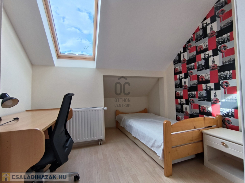 Debrecen egyik legkedveltebb és mégis csendes környékén, a Gerébytelepen kínálunk eladásra, egy 120 m2-es, tégla építésű családi otthont 270 m2-es , önálló telken. A ház 2000- ben épült, tégla falazattal, majd a tetőtér 2007-ben beépítésre került. Élhető terek , jól átgondolt helyiségek, kiváló benapozás jellemzi. Gázcirkó fűtéses, radiátor hőleadókkal. A földszinten a tágas nappalin és étkező konyhán kívül a fürdőszoba mellett még 2 db lakószoba is kialakításra került, A felső szinten 3 kisebb szoba nyílik a közös nappali helyiségből amely klímával ellátott . Itt zuhanyzós fürdőszoba kapott helyet. Ebben a házban minden családtag megtalálja a saját helyét, legyen szó akár dolgozó-, gyerek- vagy vendégszobáról. Az ingatlan beépített bútorokkal és szekrényekkel rendelkezik, konyhája gépesített. A jelenlegi bútorzat is igény szerint maradhat, így akár azonnal birtokba vehető!