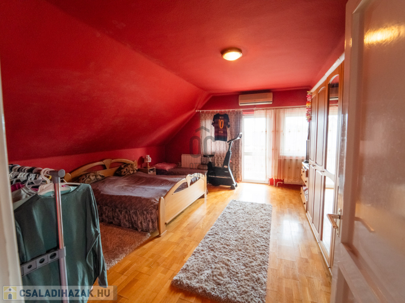 Az ingatlan 7 cm-es hőszigeteléssel, cseréptetővel, valamint az emelet klímával rendelkezik, így télen-nyáron kényelmes otthont biztosít. Beton alapra tégla falazata van, a gázcirkós fűtés radiátoros hőleadókkal garantálja az energiatakarékos és gazdaságos működést. Nyílászárói 2 rétegű műanyag hőszigetelt ablakok. A földszinten található egy szoba, nappali+konyha és fürdőszoba illetve hálóként is használható. Az emeleten további 3 szoba és fürdőszoba található. 2 erkélye is van az emeleten.