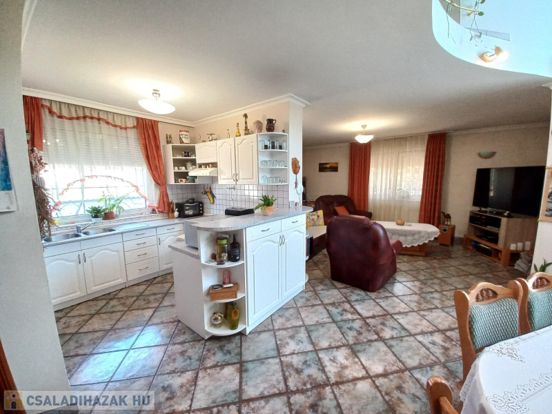 Praktikus tér kialakítása, sok ablaka miatt világos, kellemes hangulatú ingatlan. Többgyermekes családok számára kiváló választás, hiszen a tágas amerikai konyhás nappali 50 nm feletti, ahonnan közvetlen kijárat van a teraszra.