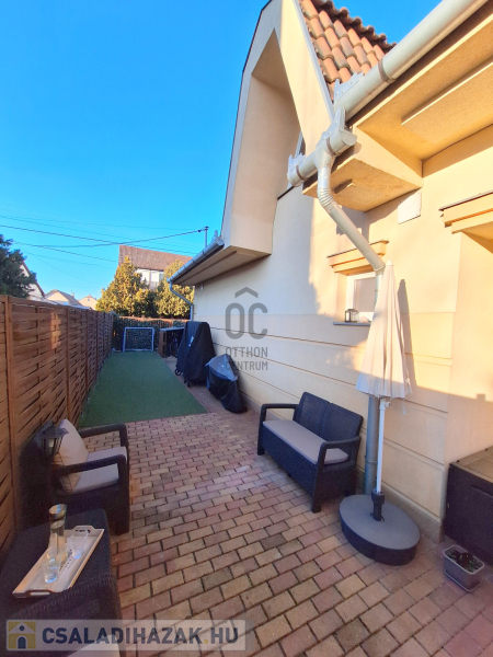 Felszereltség: gázcirkó fűtés, klíma, napelem, riasztó, gondozott kert.