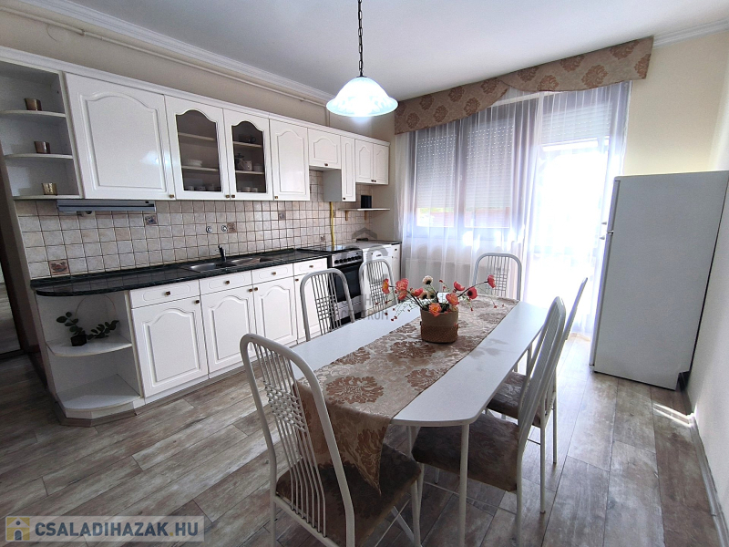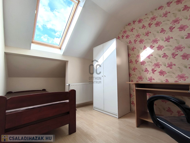 Debrecen egyik legkedveltebb és mégis csendes környékén, a Gerébytelepen kínálunk eladásra, egy 120 m2-es, tégla építésű családi otthont 270 m2-es , önálló telken. A ház 2000- ben épült, tégla falazattal, majd a tetőtér 2007-ben beépítésre került. Élhető terek , jól átgondolt helyiségek, kiváló benapozás jellemzi. Gázcirkó fűtéses, radiátor hőleadókkal. A földszinten a tágas nappalin és étkező konyhán kívül a fürdőszoba mellett még 2 db lakószoba is kialakításra került, A felső szinten 3 kisebb szoba nyílik a közös nappali helyiségből amely klímával ellátott . Itt zuhanyzós fürdőszoba kapott helyet. Ebben a házban minden családtag megtalálja a saját helyét, legyen szó akár dolgozó-, gyerek- vagy vendégszobáról. Az ingatlan beépített bútorokkal és szekrényekkel rendelkezik, konyhája gépesített. A jelenlegi bútorzat is igény szerint maradhat, így akár azonnal birtokba vehető!