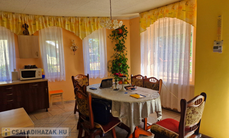 A 142 m²-es, szintes elrendezésű ház folyamatosan karbantartott, így új lakói azonnal birtokba vehetik. Kialakítása kifejezetten a család kényelmét szolgálja: a 4 külön nyíló szoba lehetőséget ad arra, hogy minden gyermeknek vagy családtagnak saját birodalma legyen, míg a tágas nappali a közös együttlétek színtere. A külön étkező és teljesen felszerelt konyha garantálja, hogy a közös étkezések igazi családi élményt jelentsenek.