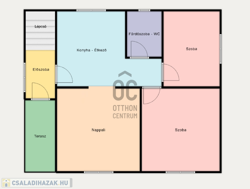 Földszint helyiségei: Étkező-konyha, nappali és 2 hálószoba, fürdőszoba-Wc egy helyiségben és hangulatos terasz Ideális az idősebb generációnak.