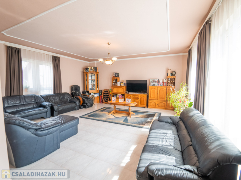 A 450 m²-es telek tökéletesen szolgálja a családi pihenést: gondozott kert, szalonnasütő, valamint egy 35 m²-es garázs várja, amelyben akár két autó is kényelmesen elfér. A tágas belső tér és a praktikus elrendezés kényelmet biztosít minden családtag számára, miközben az udvar nyugodt környezete ideális kikapcsolódást nyújt.