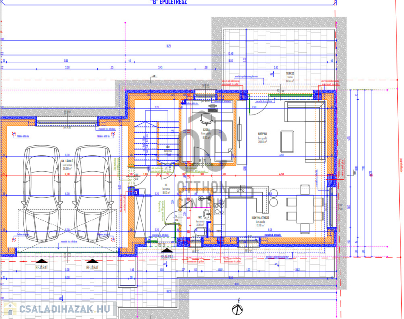 A minimalista kialakítás és az egyedi tervezés garantálja, hogy a modern életstílushoz igazodva élvezhesd az otthon kényelmét. A ház szívében egy tágas nappali található, amely a prémium kivitelezésnek köszönhetően világos és barátságos légkört teremt. Az amerikai konyha ideális helyszín a közös étkezésekhez és családi összejövetelekhez, hiszen a terasz mérete 16,65 nm, ahol kellemes estéket tölthettek el a szabadban.