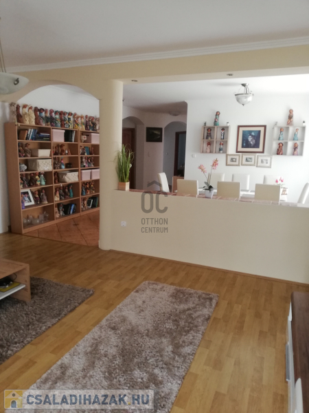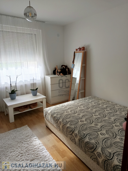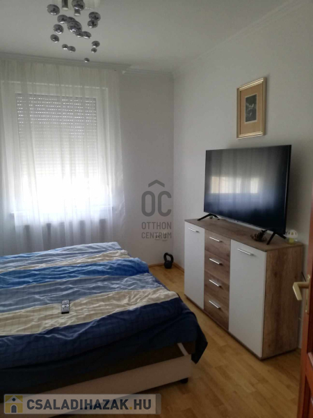 Debrecen családi házas zöld övezetében, a Biharikert csendes utcájában, eladó egy nettó 126 m2-es, nappali-amerikai konyha-étkező + 3 külön nyíló szobás, dupla komfortos, földszintes, önálló családi ház, 700 m2-es parkosított kerttel. Az ingatlan Porotherm 30-as falazóblokkból épült, 10 cm-es hőszigeteléssel. A tető beton cserép fedést kapott. A fűtésről kondenzációs kombi gázkazán gondoskodik, a szobákban radiátorokon keresztül, míg a hideg burkolattal ellátott helyiségekben padlófűtéses rendszerben, ezért a fűtés gázdíja bőven a támogatott limit alatt van, amihez hozzájárulnak a műanyag nyílászárók is. Teljesen új, garanciális hűtő-fűtő klíma biztosítja az optimális hőmérsékletet az év bármely szakában. A közlekedőkben mennyezetig beépített gardróbok állnak rendelkezésre, amelyek fél évvel ezelőtt készültek. A nagyobb fürdőszobában sarokkád és WC kapott helyet, míg a kisebbikben zuhanyzó került beépítésre, emellett külön WC is rendelkezésre áll.