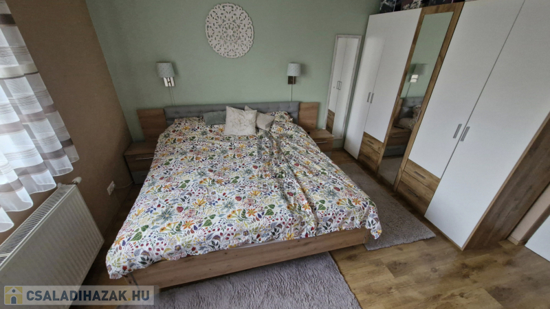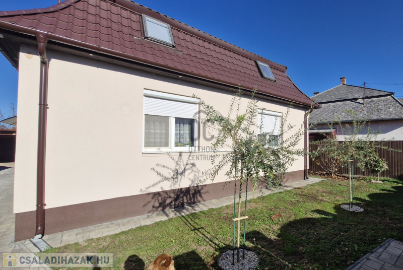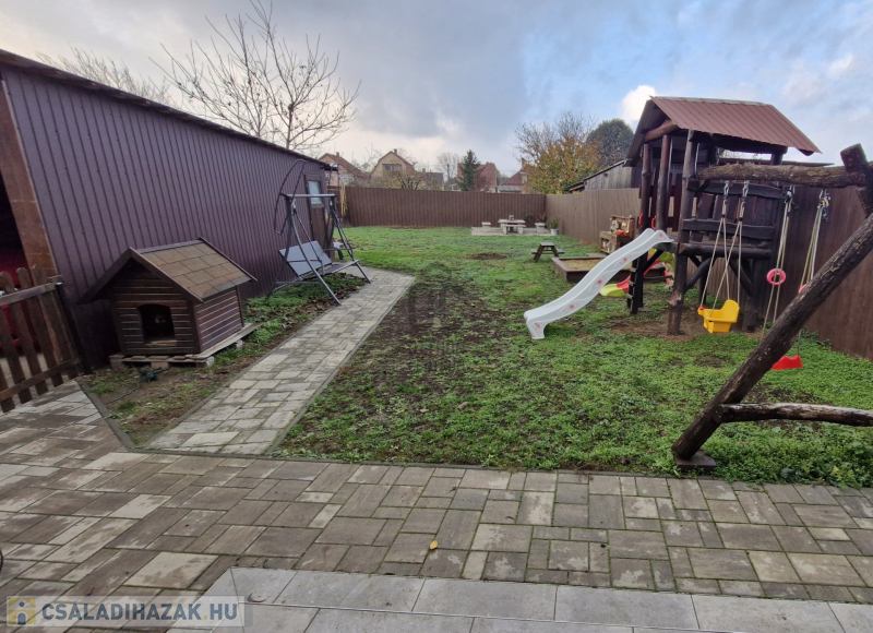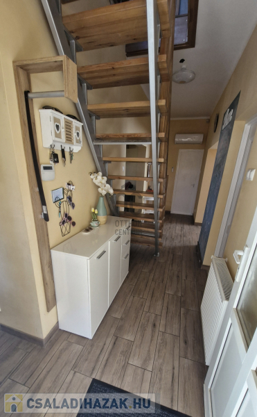 Az otthon kényelméhez két klíma, kombi kazán és egy okosrendszer is hozzájárul, amelyről távolról vezérelhető a kapu, a fűtés, a klímák, a riasztó és a világítás. A 700 m²-es telek rendezett és élhető: 50 m²-es előkert díszfákkal, 40 m² fedett terasz, saját szalonnasütő, játszótér, vetemény és kétállásos beálló. Új tetőlemez, új kerítés, műanyag nyílászárók, 3 fázisú áram, 4 zónás riasztó és külső kamerák teszik biztonságossá és időtállóvá.
