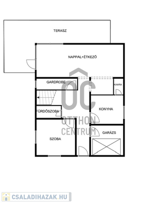 - földszinten: tágas, részben fedett terasz- és kertkapcsolattal bíró Nappali, hangulatos és működő kandalló ,fürdőszoba, kamra-konyha, pincelejáró, gardrób
