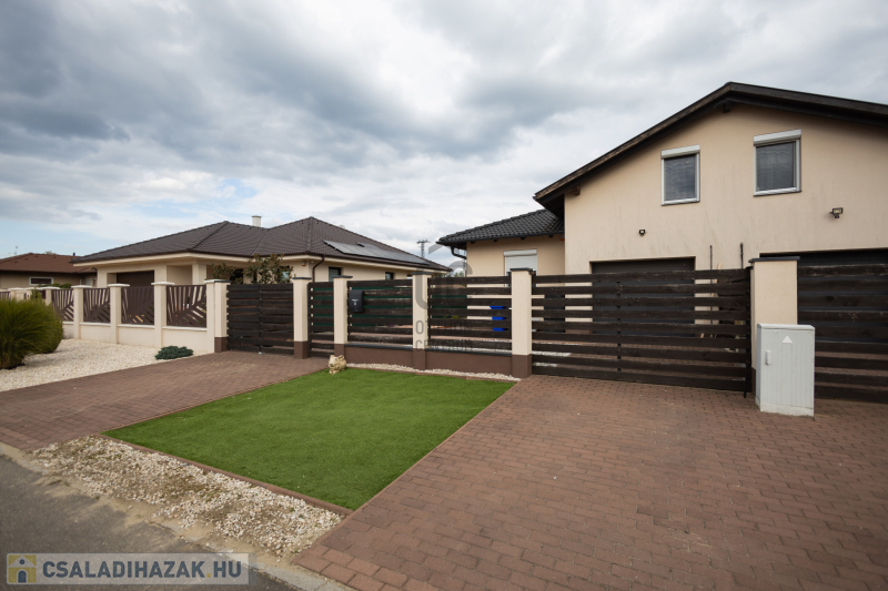 A 573 nm-es, gondosan karbantartott telken fekvő 134,7nm-es ingatlan, nappali + 4 hálószobás elrendezéssel biztosítja a tágas és kényelmes életteret akár nagyobb család számára is. A ház különlegessége a magas műszaki tartalom – padlófűtés, prémium nyílászárók, energiatakarékos megoldások, valamint egy fűtött, automata kapus garázs, amely a hűvösebb hónapokban is maximális kényelmet biztosít.