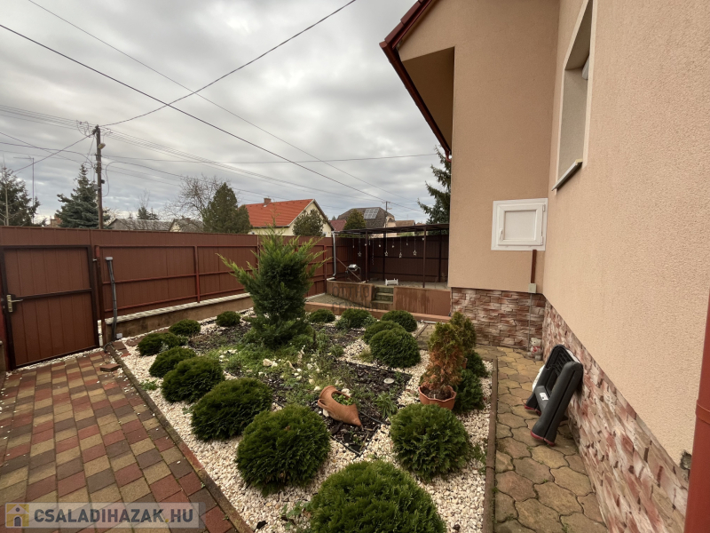 Ez a kétszintes, részben alápincézett, garázssal és tárolóval megépített családi ház, Debrecen egyik rendezett, családi házas övezetében található.