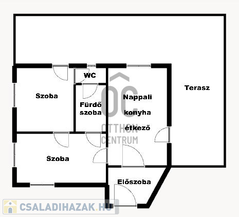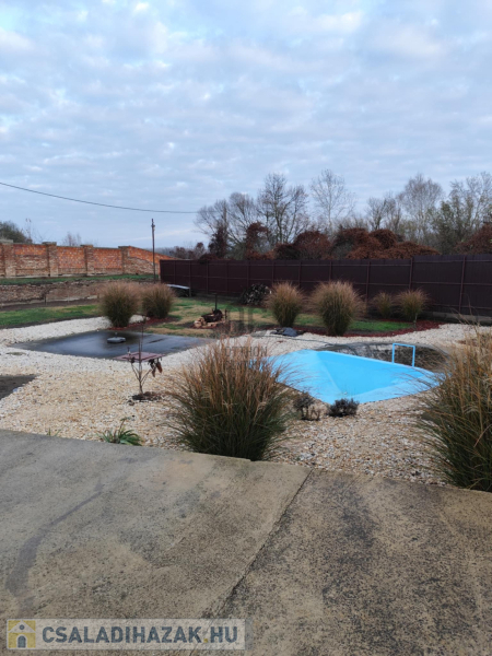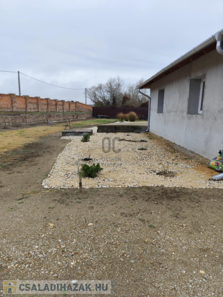Egy 2 szoba konyha, étkező, fűrdőszoba, WC-s ház alapja, melybe már a vllany, viz, és szenyvízcsatorna kiépítése is megtörtént.