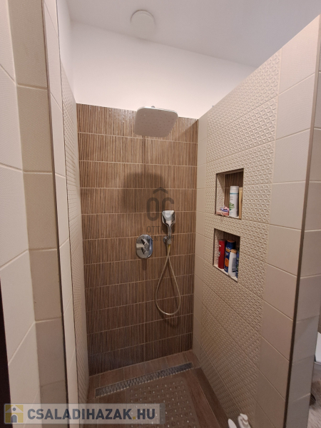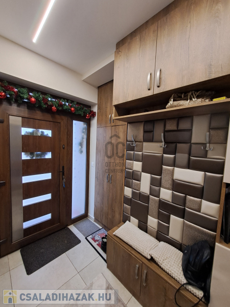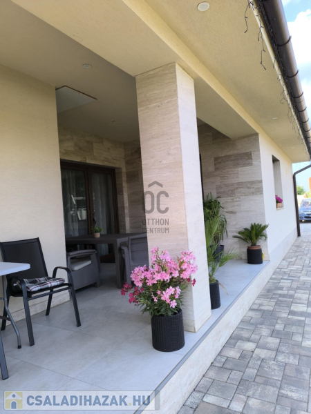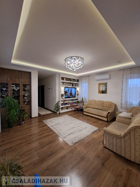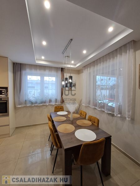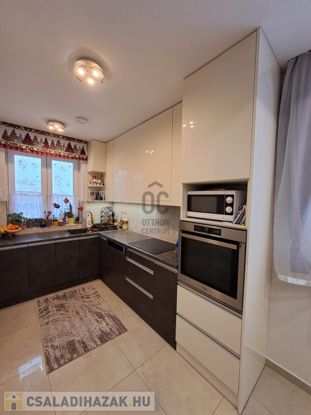 Az ingatlan amerikai konyhás, tágas, világos és modern kialakítású nappalival rendelkezik. A mennyezeti részben automata szellőztető rendszer és LED-világítás beépítésére került sor. A ház belmagassága a konyha-étkező részben 2,7 méter a többi helyiségben 2,84 méter. Az ingatlanba kiváló minőségű, többrétegű műanyag Schücco márkájú nyílászárókat, elektromos redőnyöket és központi porszívót szereltek be. Egyedi tervezésű, gépesített konyhabútor, illetve beépített szekrények lettek beépítve. A nagy belmagasság, a beépített bútorok, valamint szekrények eleganciát és praktikusságot kölcsönöznek az otthonnak.