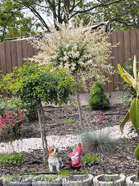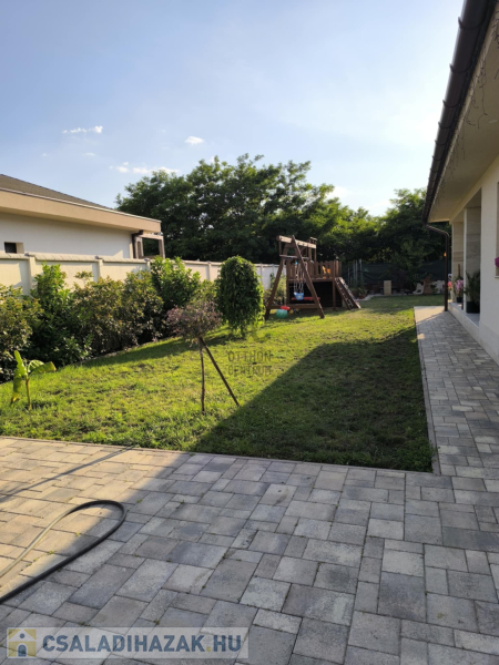 A házhoz tartozik egy 20 nm-es terasz és egy 20 nm-es nagyságú szerszámos kamra is. A kert szélső része automata öntözőrendszerrel van ellátva. A kertben a gyerekek részére kialakításra került egy játszótér is. A házban riasztó-rendszer került telepítésre, a kamera állások vezetékelve vannak.