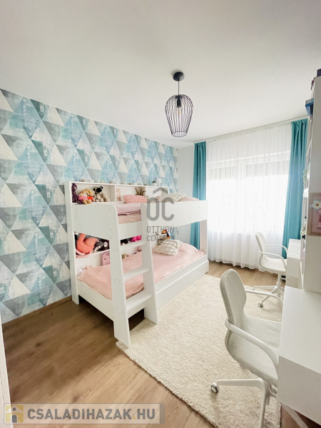 -Az emeleti szobákban laminált parketta, földszinten hideg burkolat padlófűtéssel.