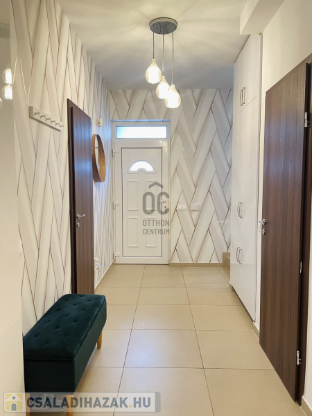 -a földszinten előszoba, lépcsőfeljáró, wc + kamra és a garázs az előszobából is átjárható.