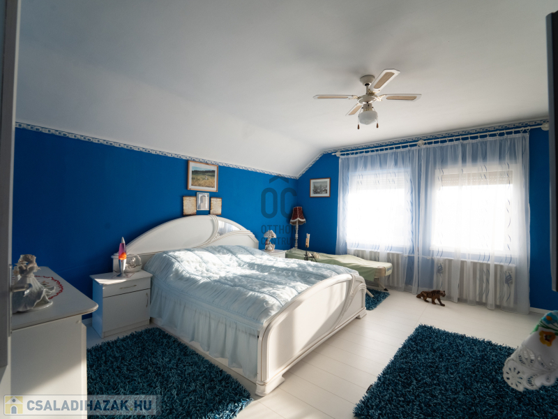 A telek mérete 838 nm, amely lehetőséget biztosít a kert növelésére vagy akár egy kis játszótér kialakítására is. Az ingatlan állapota kiváló, a fűtés gáz (cirko) rendszerrel működik, a klíma pedig a nyári hőségben biztosítja a kellemes hőmérsékletet. Az ingatlanhoz tartozik kettő kényelmes garázs, amely két autó számára kínál helyet, valamint 2 autó beállóhelyet így a parkolás sosem jelenthet problémát. A házban található beépített bútorok és szekrények nemcsak esztétikai szempontból vonzóak, hanem a praktikus tárolást is megkönnyítik. Az amerikai konyha modern dizájnja és funkcionális elrendezése ideális a családi étkezésekhez és baráti összejövetelekhez.