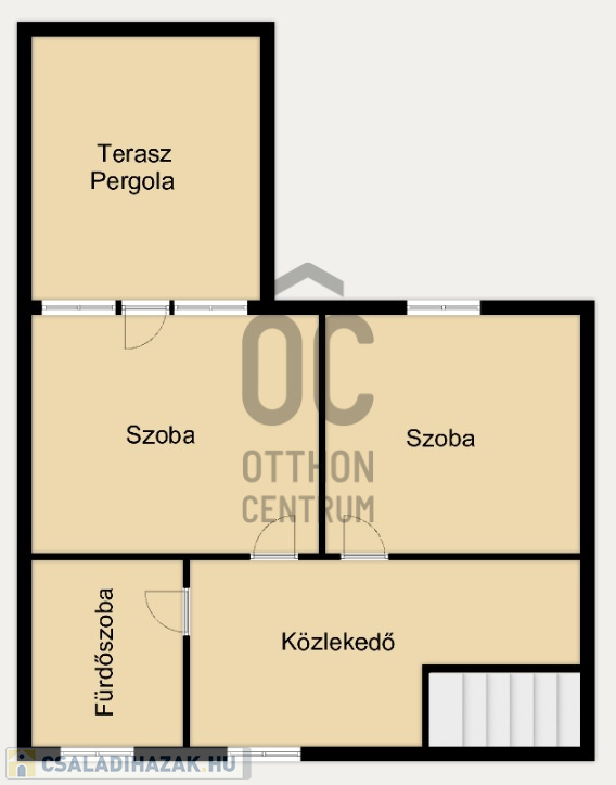 Nappali+ 2 hálószoba, a hozzá tartozó 195 nm -es telekkel, 2 fűtött garázzsal.