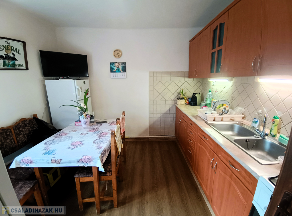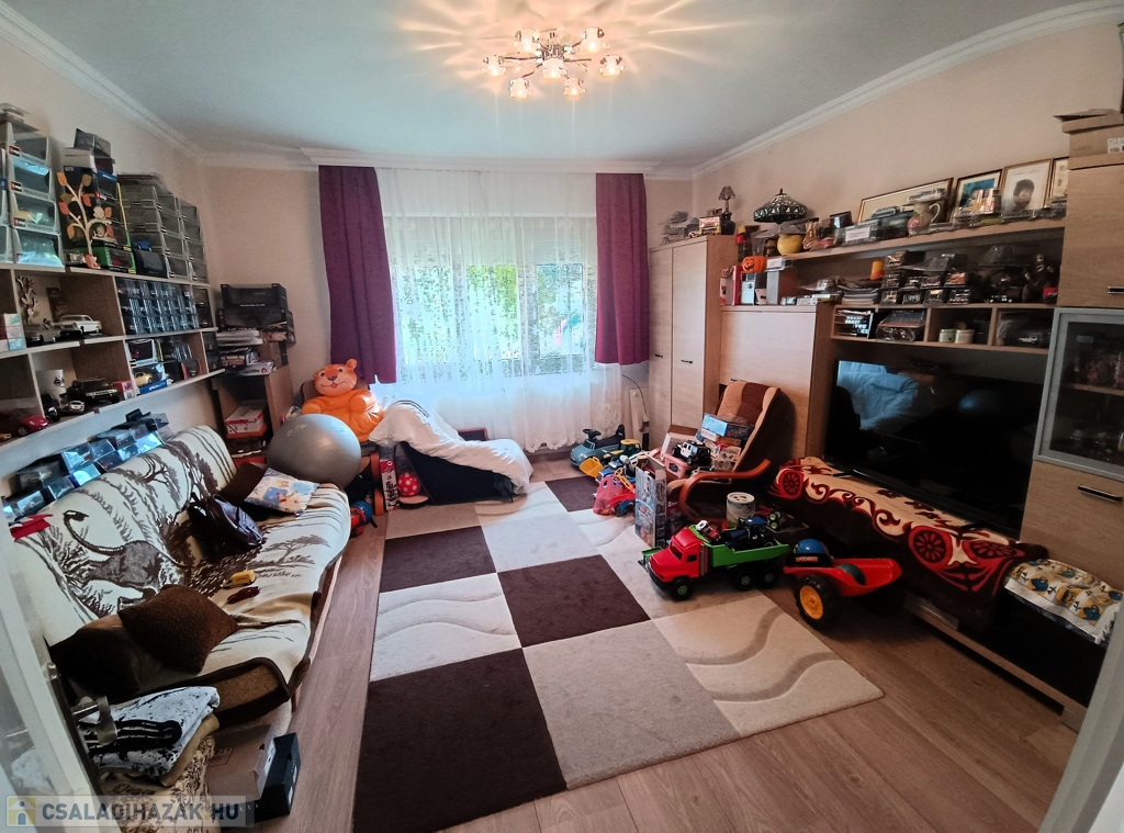 - Helyiségei: előszoba, 3 külön nyíló szoba, étkezőkonyha, mosókonyha + WC, fürdőszoba, külön még egy WC, mosdóval ellátva.
