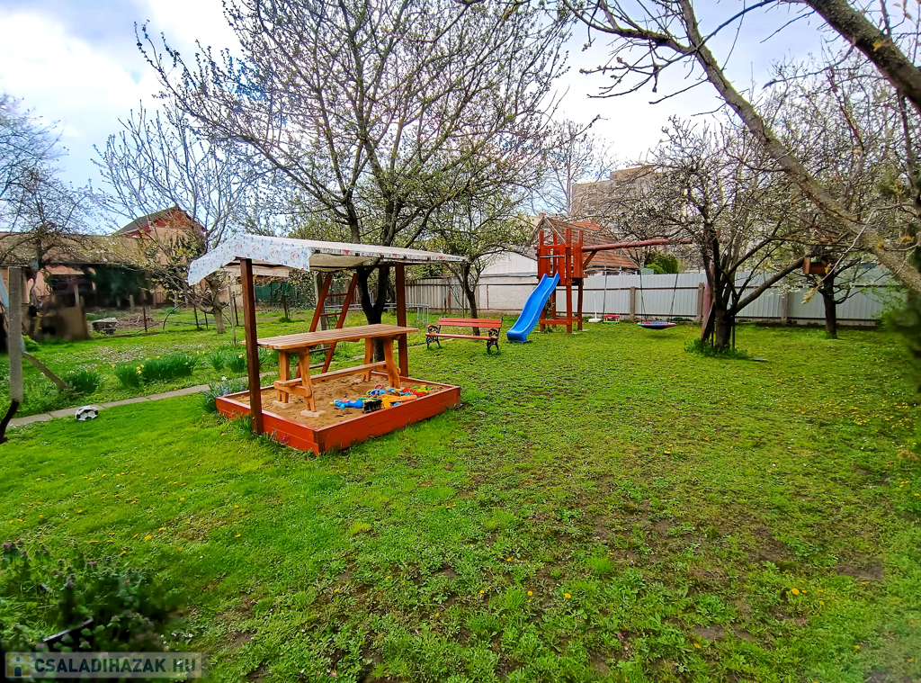 A hátsókert parkosított, gyümölcsfákkal tarkított. Gyerekek számára jól felszerelt játszótér, csúszda, homokozó, trambulin, nyáron medence is rendelkezésre áll. Kiválóan alkalmas családi, baráti összejövetelek alkalmából rendezett sütögetésre is.