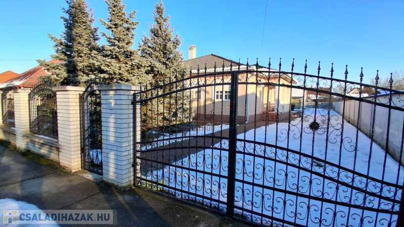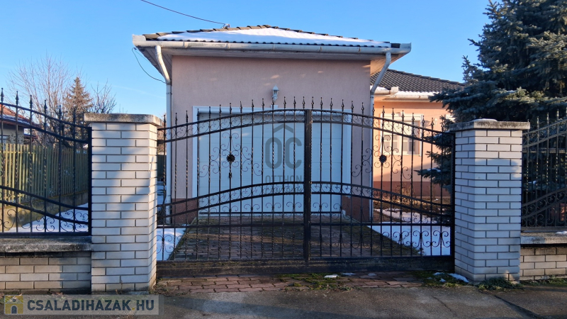 -Kovácsoltvasból készült ízléses kerítése szintén elektromos kapunyitós szerkezetű.