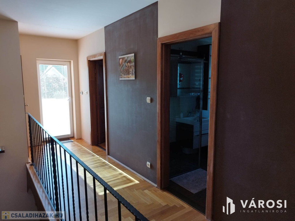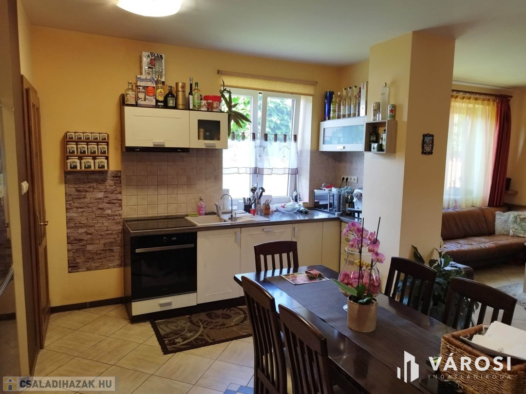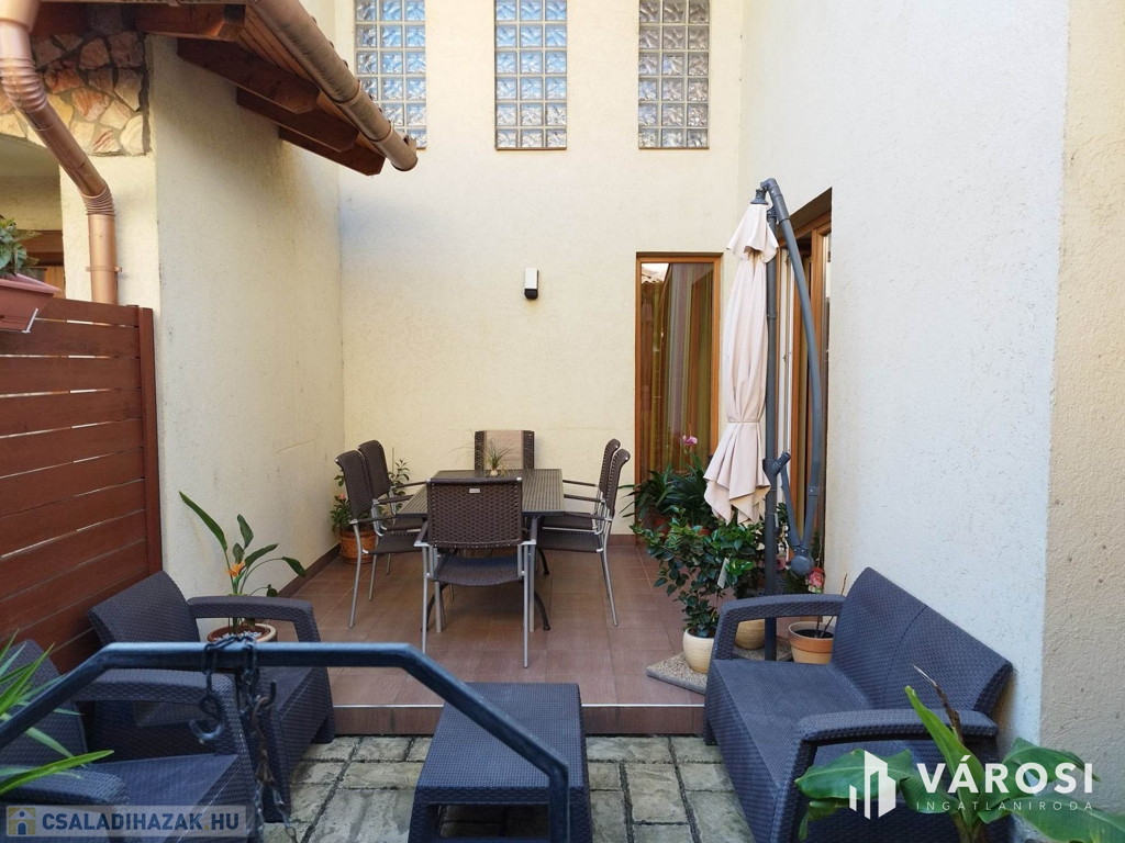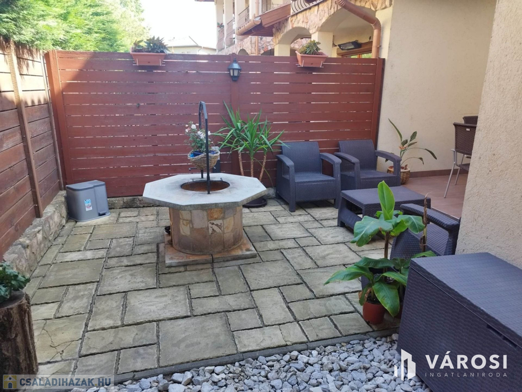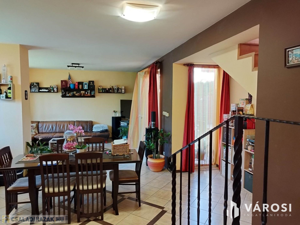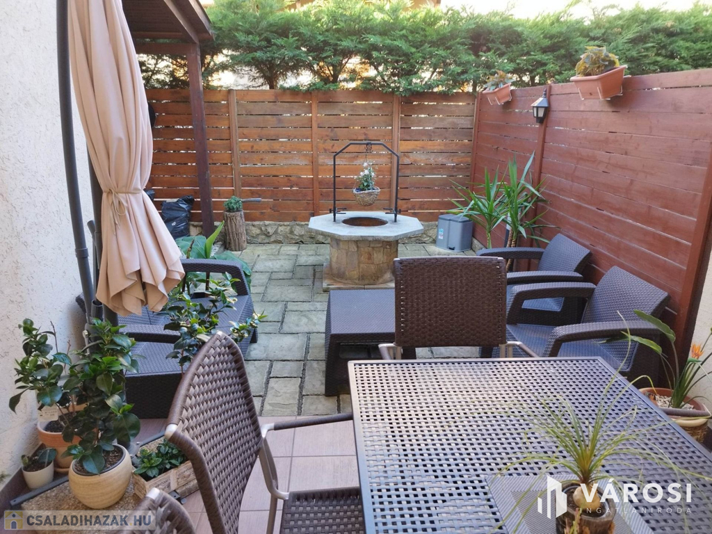 Debrecen kiemelt zöldövezetében a Liget lakóparkban, 125 nm-es 3 szoba nappalis szélső sorház 300 nm telekkel eladó. Az ingatlan csendes igényes szép környezetben helyezkedik el, és mivel nem közbülső sorház így a telek is nagyon jól élhető, rendezett parkosított, szép nagy teraszos, és a ház is 3 oldalról körbe járható. A ház elosztási kiváló, a földszinten található a nappali étkező konyha, egy wc mosdó, és természetesen a garázs. A felső szinten pedig 3 hálószoba, fürdőszoba wc, és egy szép nagy terasz. Ha egy igazán exkluzív helyen keres egy igazán jól megtervezett élhető házat akkor hívjon és nézze meg!