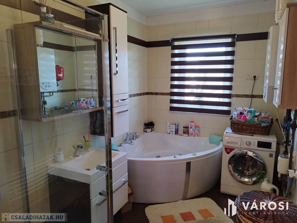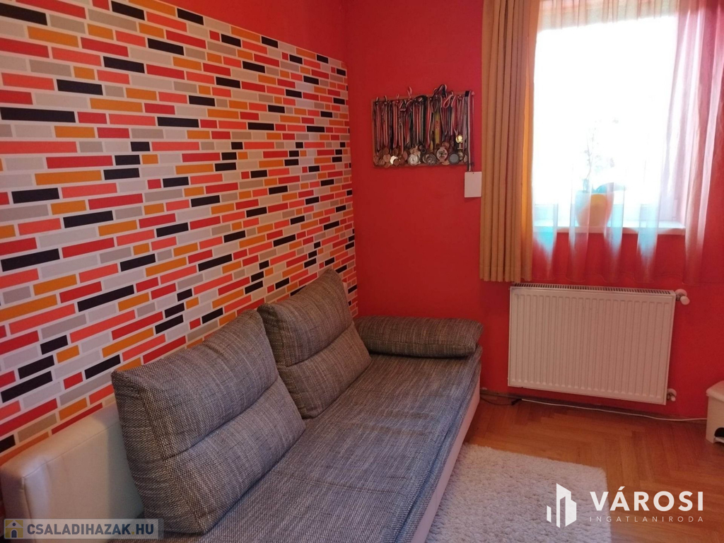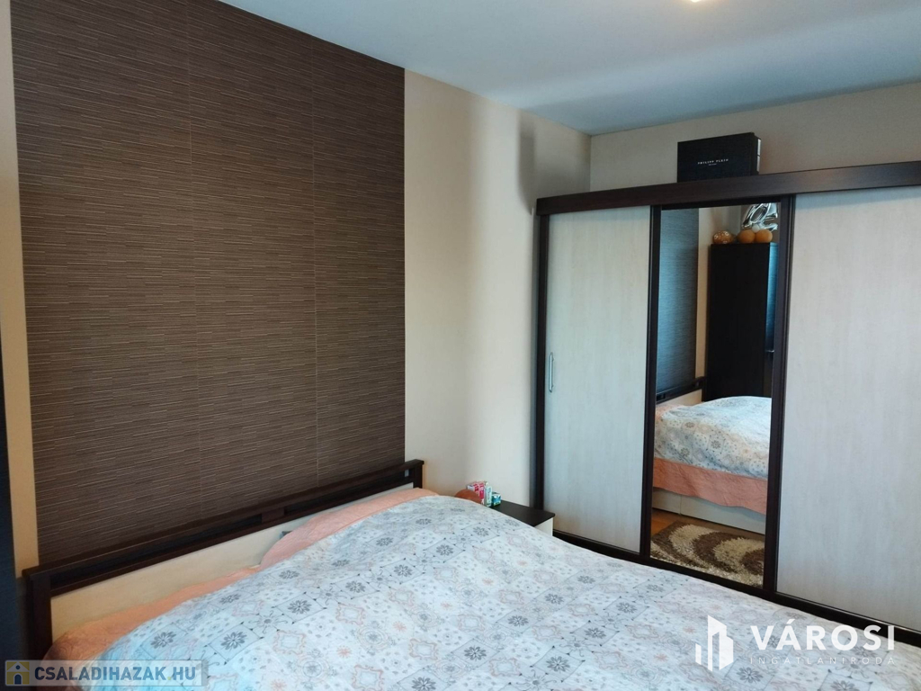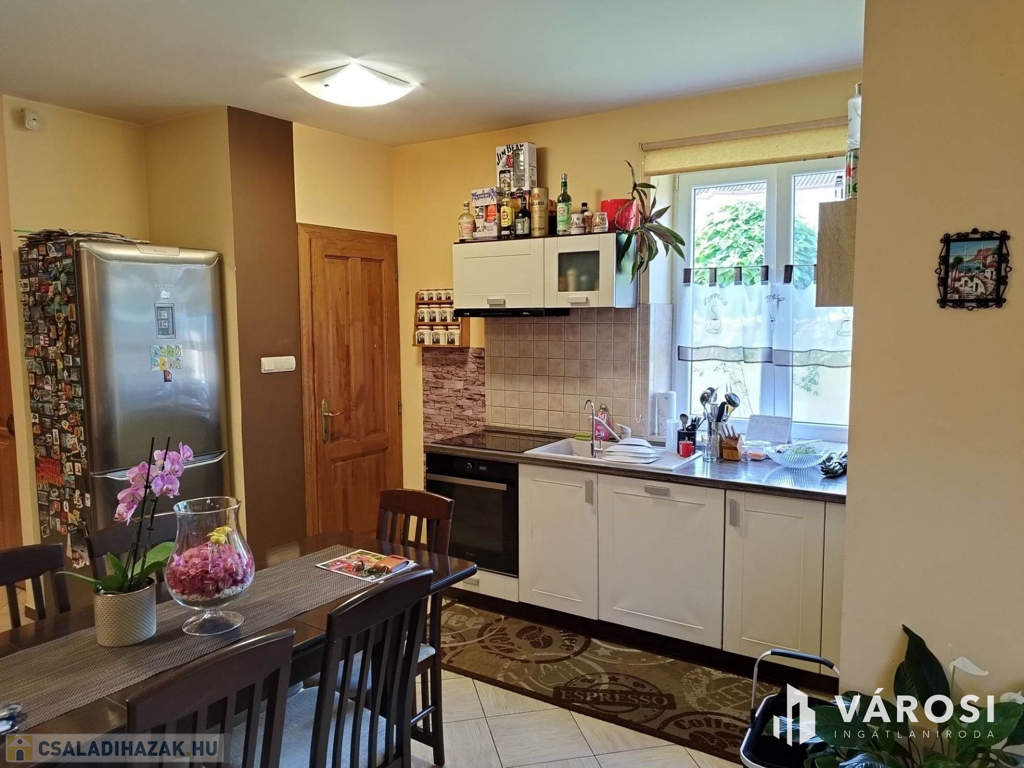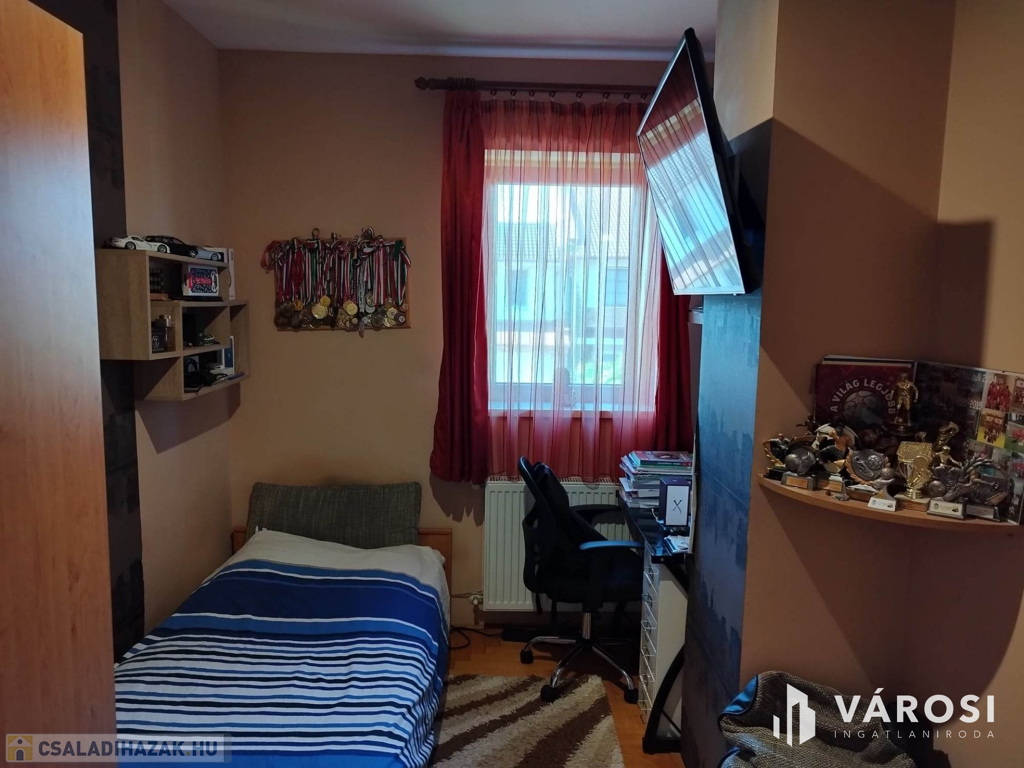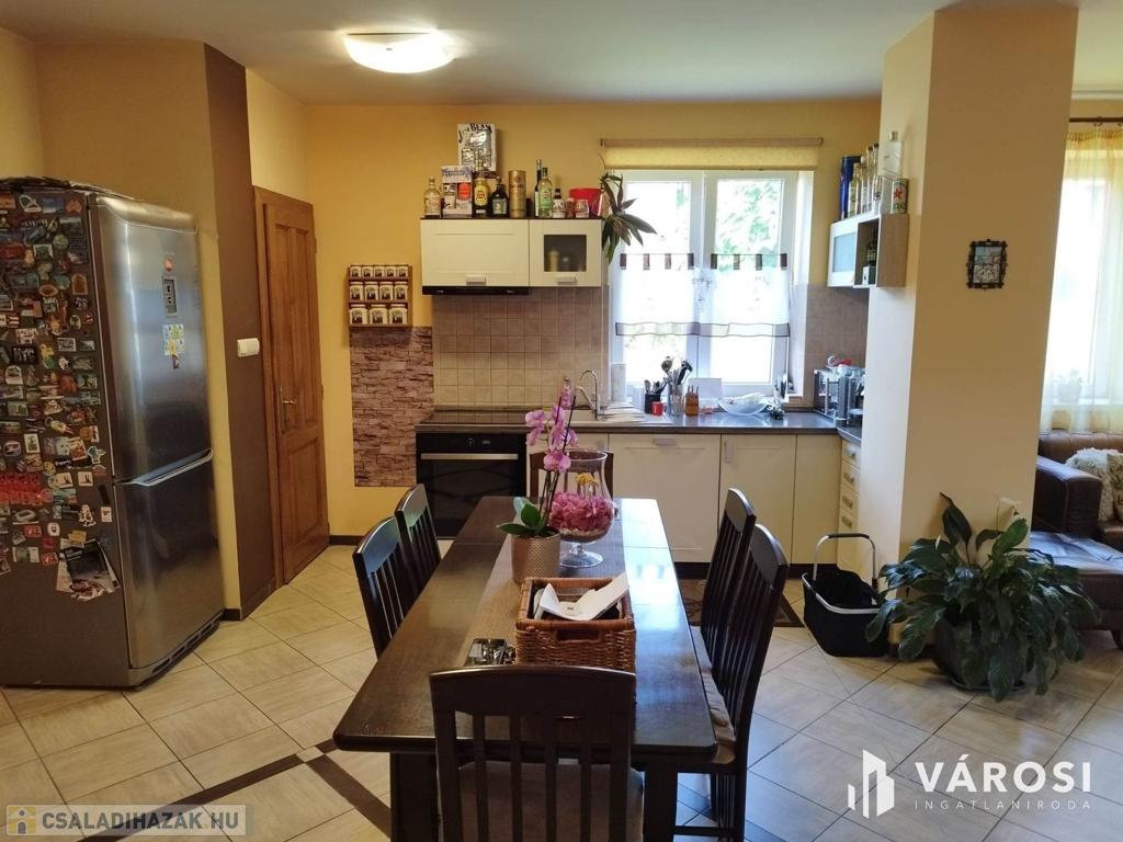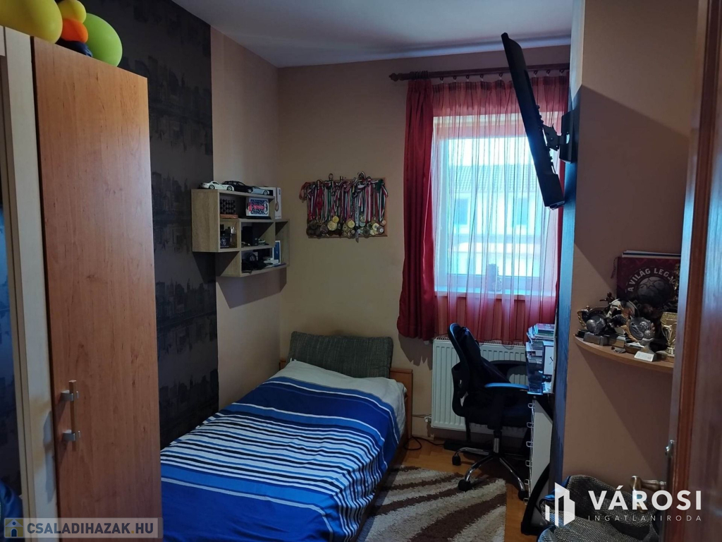 Debrecen kiemelt zöldövezetében a Liget lakóparkban, 125 nm-es 3 szoba nappalis szélső sorház 300 nm telekkel eladó. Az ingatlan csendes igényes szép környezetben helyezkedik el, és mivel nem közbülső sorház így a telek is nagyon jól élhető, rendezett parkosított, szép nagy teraszos, és a ház is 3 oldalról körbe járható. A ház elosztási kiváló, a földszinten található a nappali étkező konyha, egy wc mosdó, és természetesen a garázs. A felső szinten pedig 3 hálószoba, fürdőszoba wc, és egy szép nagy terasz. Ha egy igazán exkluzív helyen keres egy igazán jól megtervezett élhető házat akkor hívjon és nézze meg!