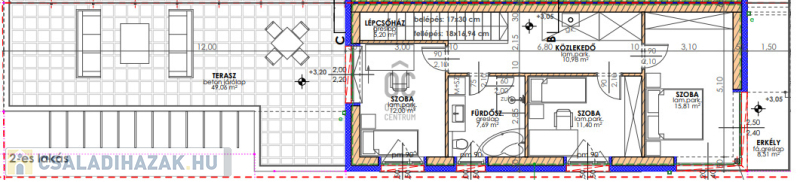 -szoba (15,15 m2) – zuhanyzós WC (4,56 m2) -lépcsőház (5,9 m2)