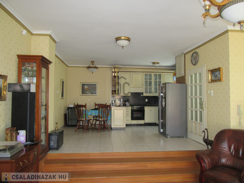 A földszinten lévő tágas nappali-amerikai konyha-étkező mellett spájz, zuhanyzós fürdőszoba és WC van,valamint egy külön bejáratú,35 nm-es önálló minigarzon is (szoba, főzőfülke, előszoba, kádas fürdőszoba, WC), ami akár irodaként is funkcionálhat. Az emeleten 4 hálószoba valamint fürdő és wc.