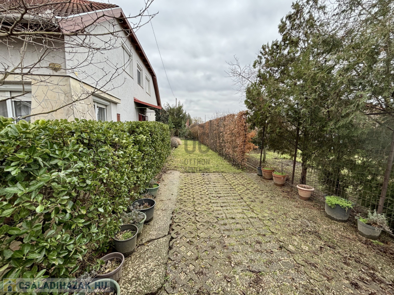 Az 180 m²-es, háromszintes ikerház egy 540 m²-es, gondosan kialakított telken helyezkedik el, csendes, rendezett környezetben.