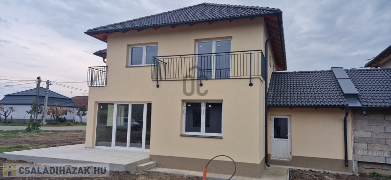 A kivitelezés jelenleg szerkezetkész állapotban van, külső vakolás kész, a színezés után a belső munkák folytatódnak. A nyílászárók beépítésre kerültek és a tető is elkészült. A végleges belső kialakítás jelenleg még változtatható, igény szerinti helyiséglista megvalósítható. Alapból két fürdőszoba lett tervezve és három WC, de a nappali + 5 szobához az emeleten kialakítható egy harmadik fürdőszoba is, épített zuhanyzóval vagy káddal is.