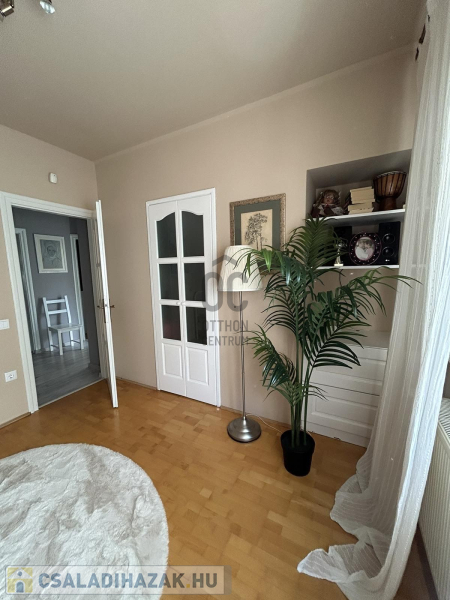 Debrecen Prémium lakóövezetében, az Úrrétjén eladó 115 m2 nappali, három szobás sorházi lakás. Az ingatlanhoz szépen gondozott parkosított kert tartozik öntöző rendszerrel. Garázs egy autó számára, míg a ház előtti terület további két autó számára biztosít parkolási lehetőséget. Kamerával és riasztórendszerrel felszerelt ingatlan!
