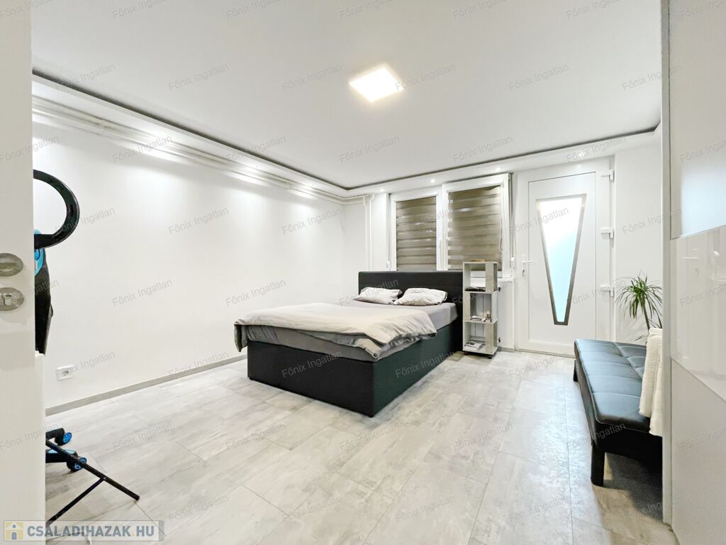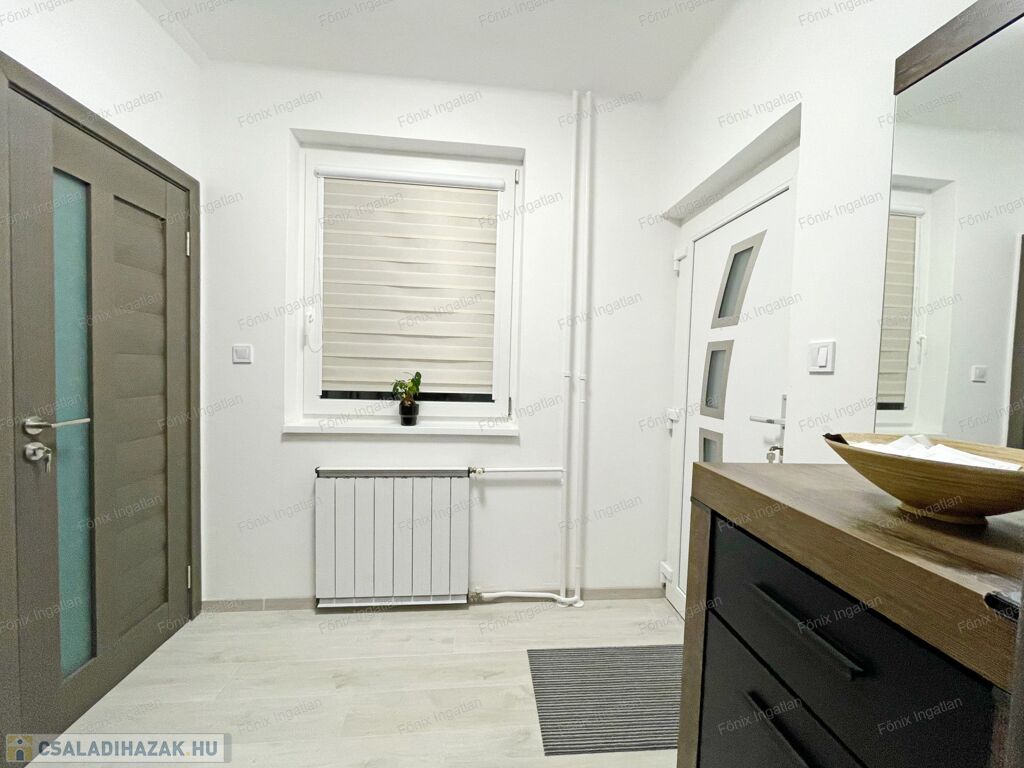 -garázs: 43 m2, elektromos garázskapu, ablaka van, vízvételi lehetőség, fűtés kialakítva,