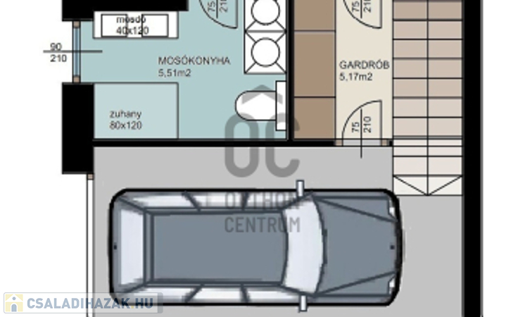 földszinten: duplagarázs, mosókonyha zuhanyzóval, gardróbbal/tárolóval